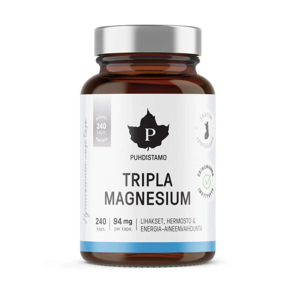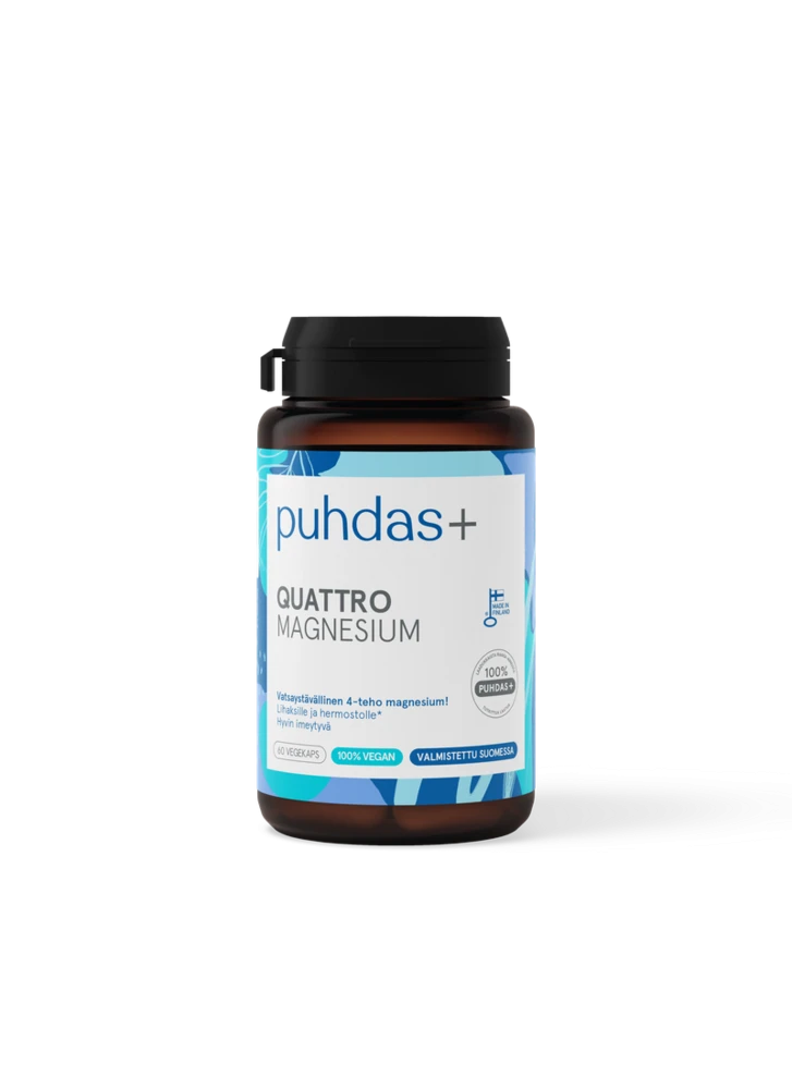 • Neljän eri magnesiumin muotoa, jotka tukevat sekä lihaksia, hermostoa että energiantuotantoa