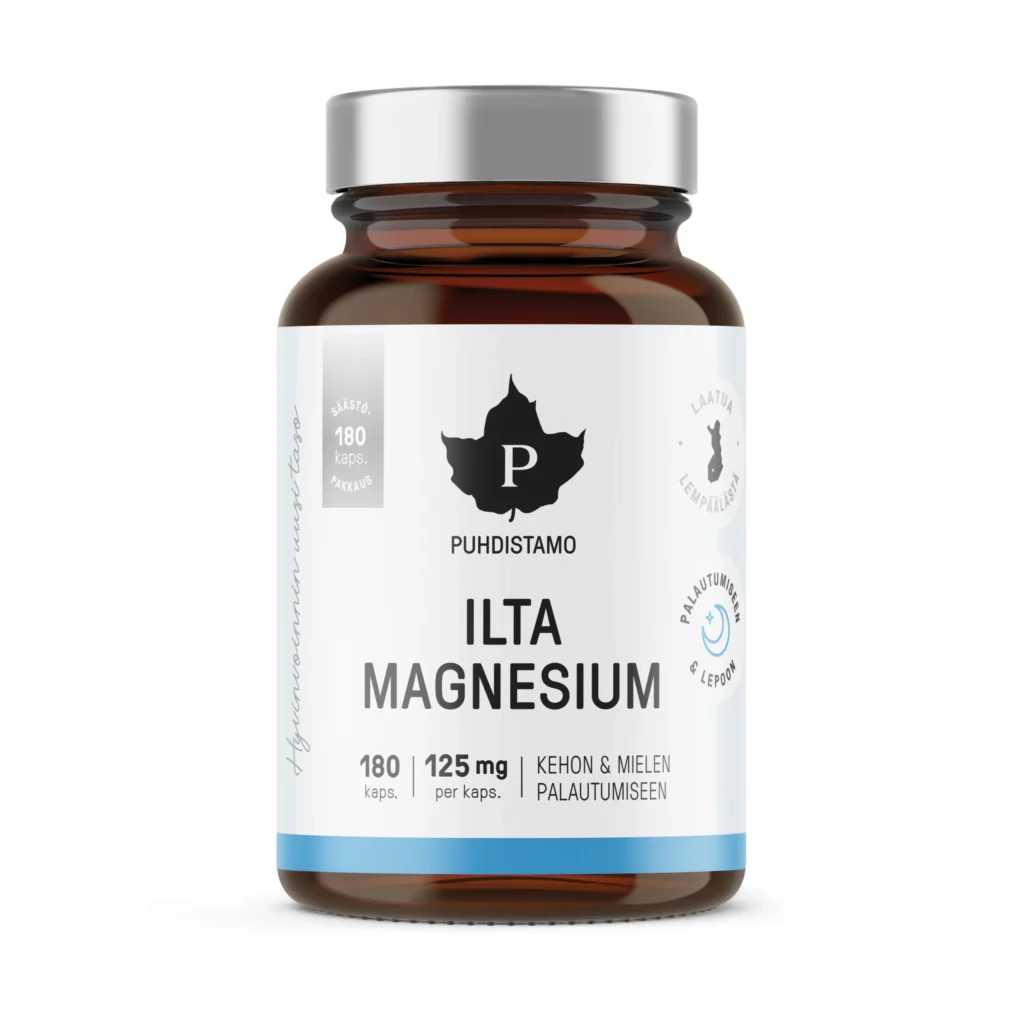 Magnesium on hermoston ja lihasten rauhoittaja. Se osallistuu satoihin entsymaattisiin reaktioihin kehossa ja toimii luonnollisena “jarruna” kiihtyneelle hermostolle. Tästä syystä sen riittävä saanti on erityisen tärkeää silloin, kun mieli käy ylikierroksilla tai kroppa ei tunnu pääsevän kunnolla lepotilaan.